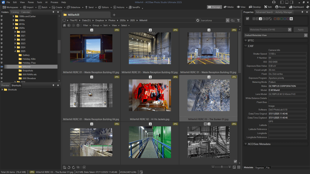 A screenshot from ACDSee showing a gallery of photos. Individually, these are just record shots. Viewed as a sequence, they tell a powerful story about saving household waste from landfill and using it to generate electricity. This is my final selection from a much larger photoshoot. Alternative photos, rejected photos, and RAWs are all stored in another folder.